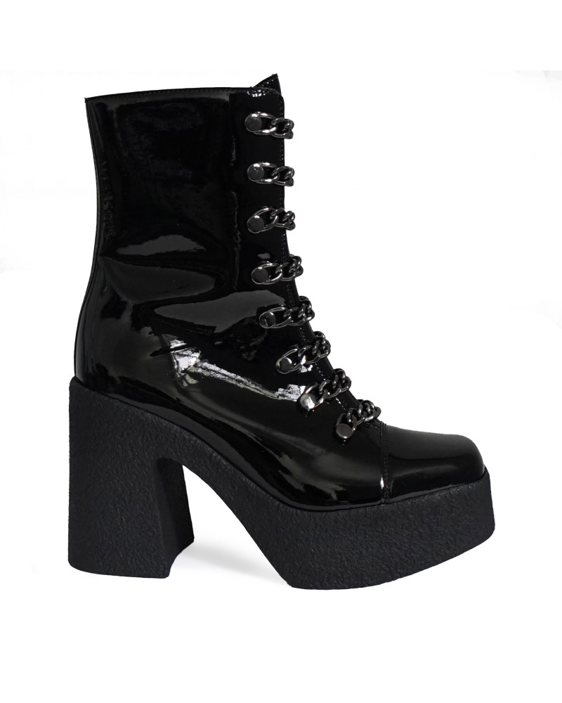 Shoe Type: Vegan platform ankle boots with patent finish