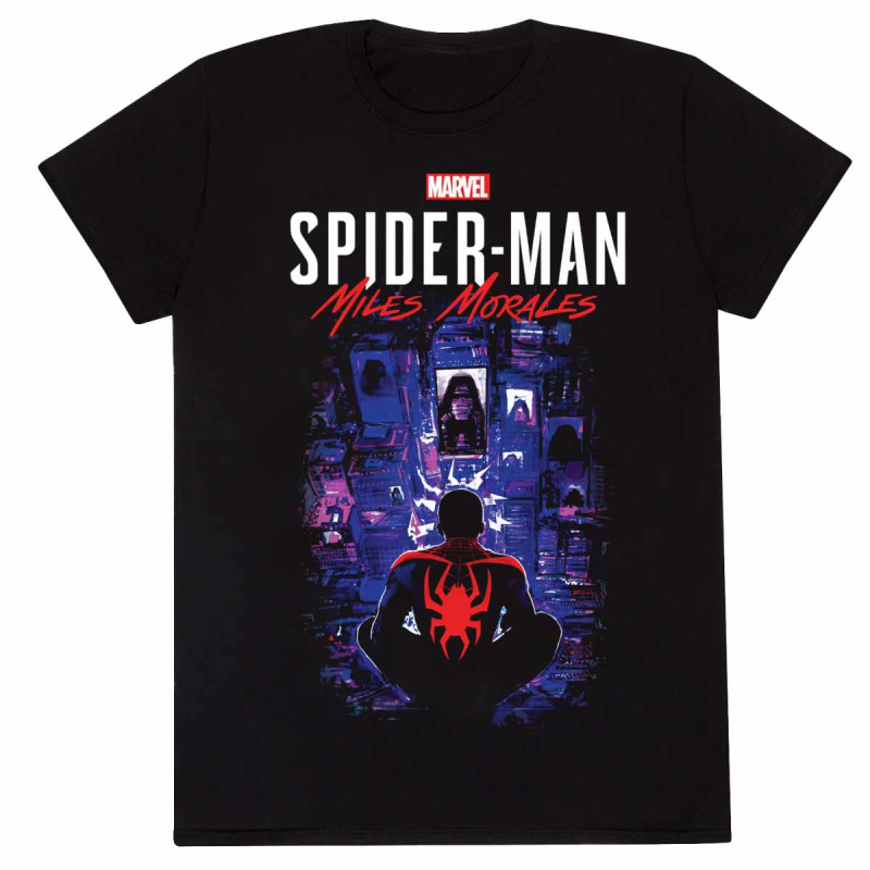 Marvel Spider-Man Miles Morales VideoGame - City Overwatch (Unisex Black T-Shirt) Schwarz