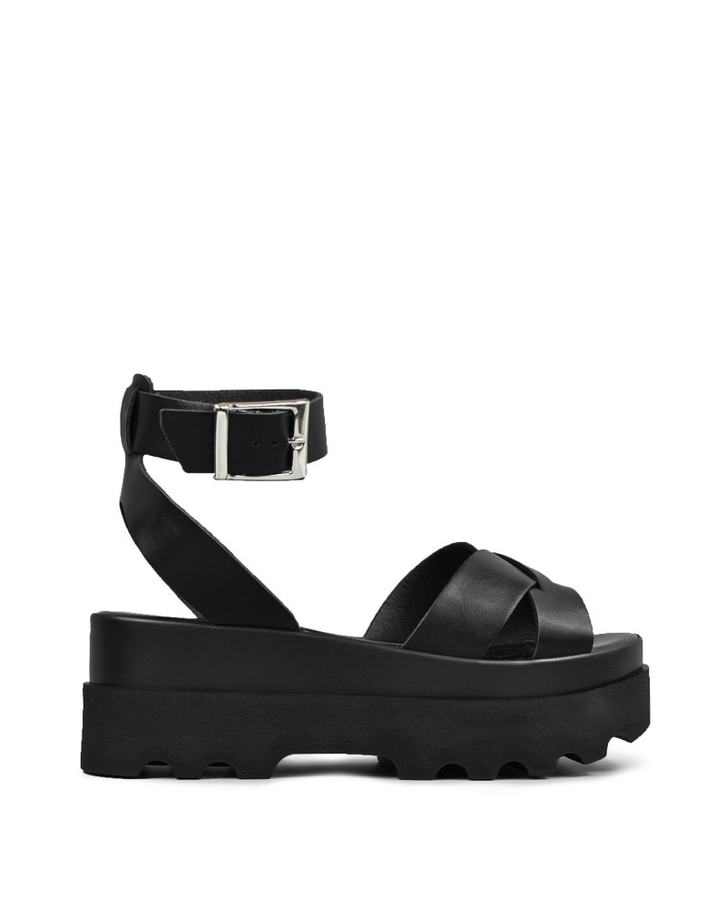 PLATFORM SANDALS WITH OPEN FINGERS AND ADJUSTABLE FASTENING AROUND THE ANKLE